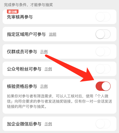 推荐选取功能:核验资格参与 / 先审核后参与