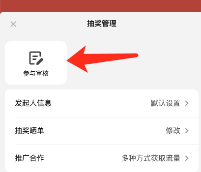 发起人在抽奖页面左下角「抽奖管理——参与审核」里,针对用户填写内容,进行审核
