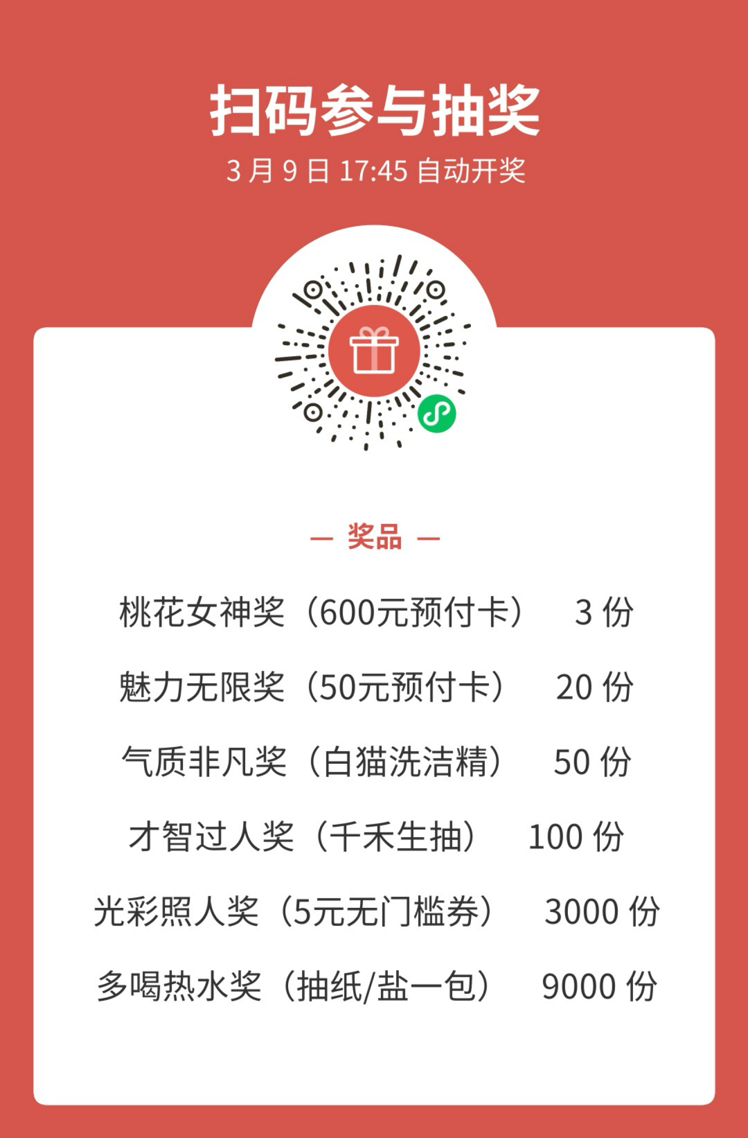 设置按参与人数解锁奖品,活动方能根据参与情况,控制奖品成本。