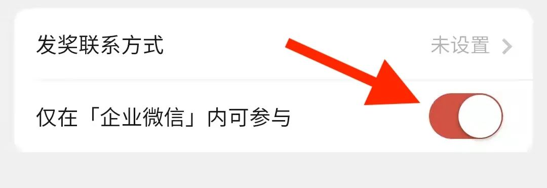 开启企微限定按钮。仅当用户跟你在企业微信的同一组织下,以企业微信身份进入,才可以参与。