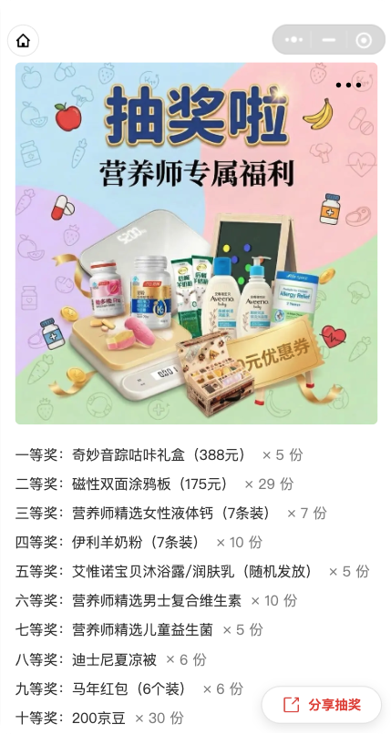 - 活动说明:🎉 营养师专属・月月抽奖来啦——每月月末开奖,营养师好友免费无门槛参与