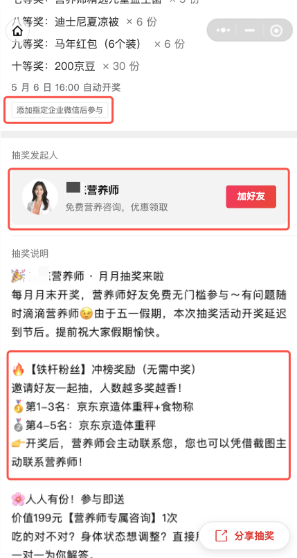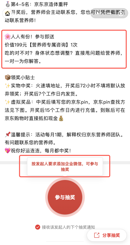 - 加企微后参与:参与抽奖前,需添加营养师企业微信为好友