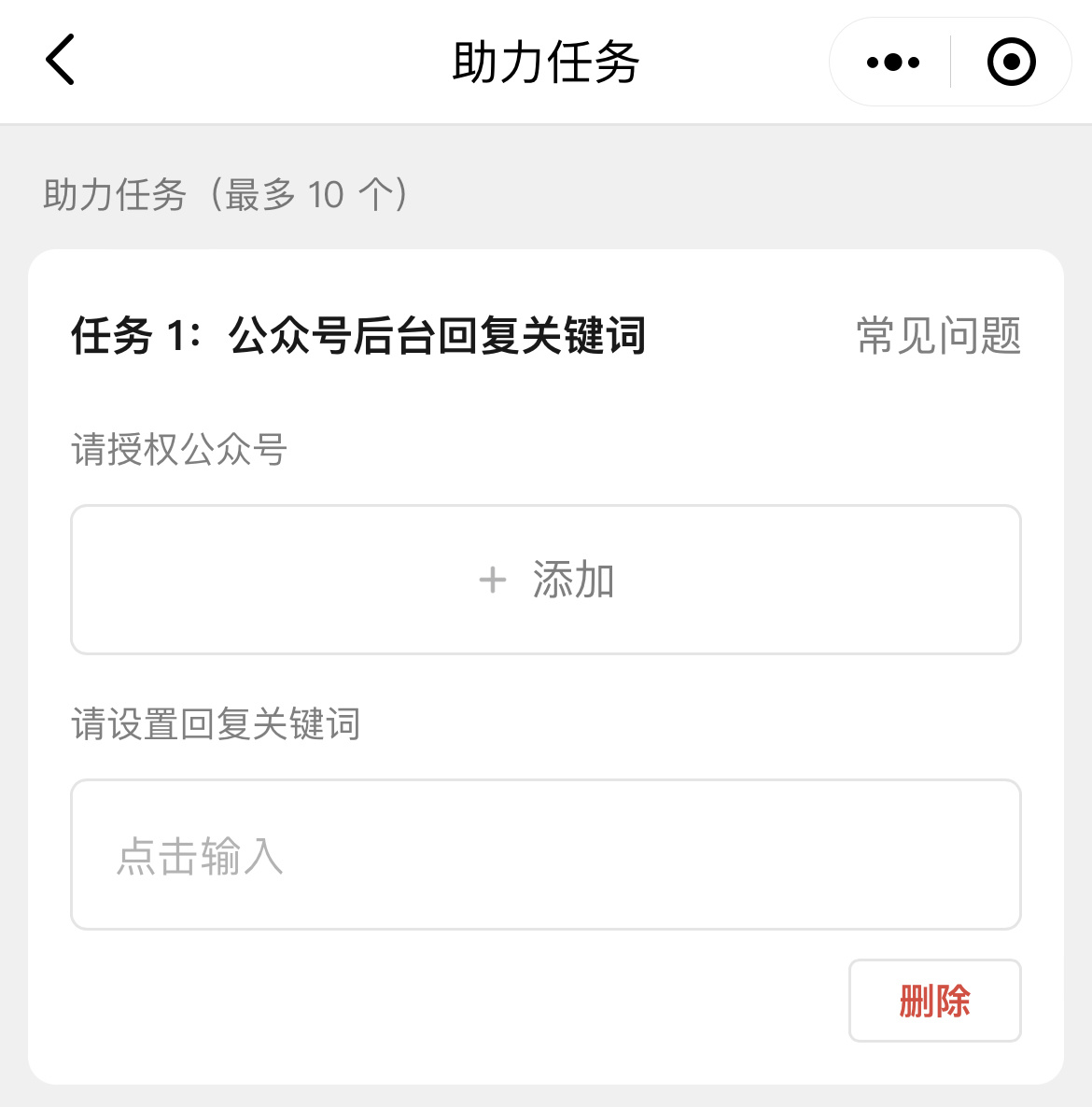 - 第一步选择「公众号后台回复关键词」的助力任务。