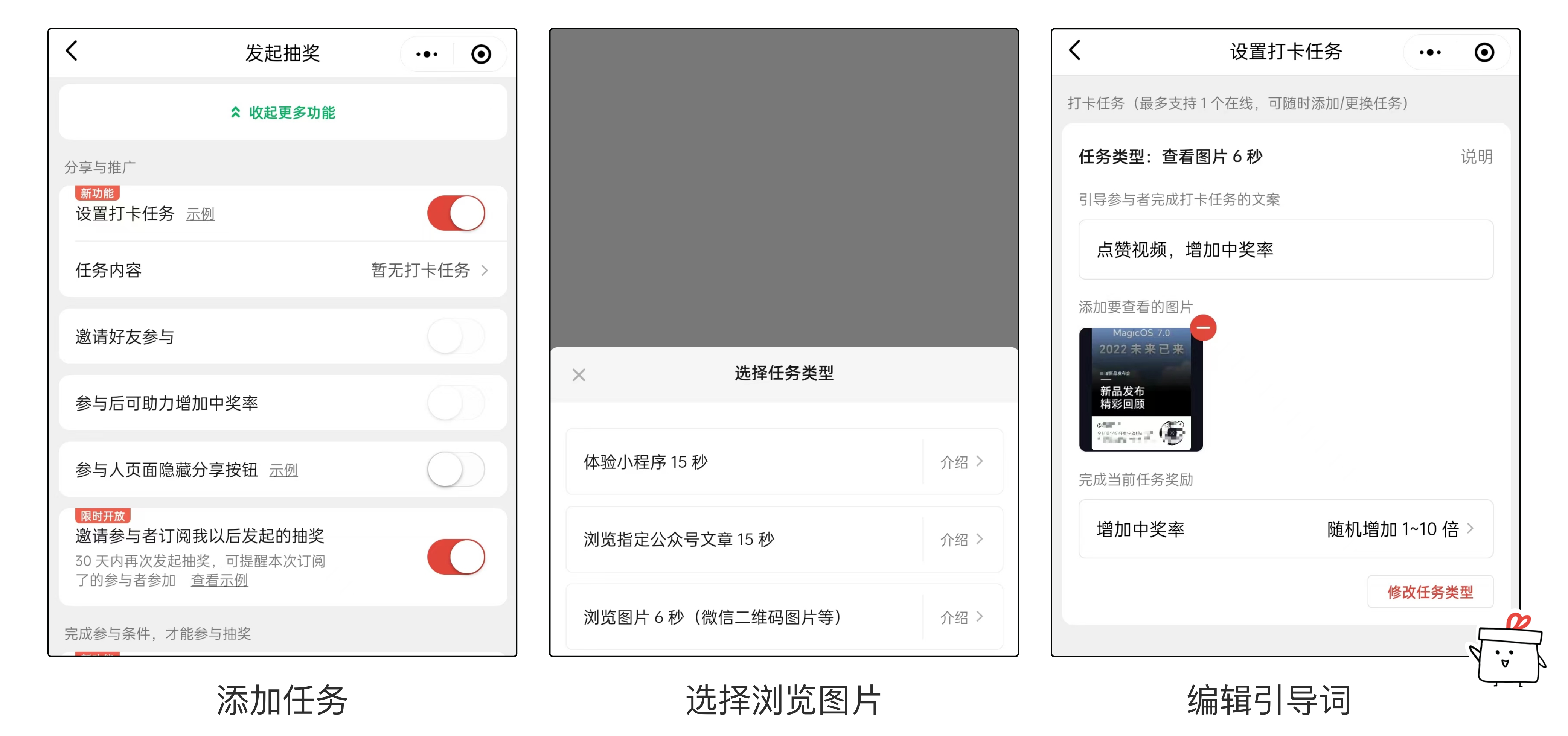 在参与/助力/打卡任务中,插入引流任务