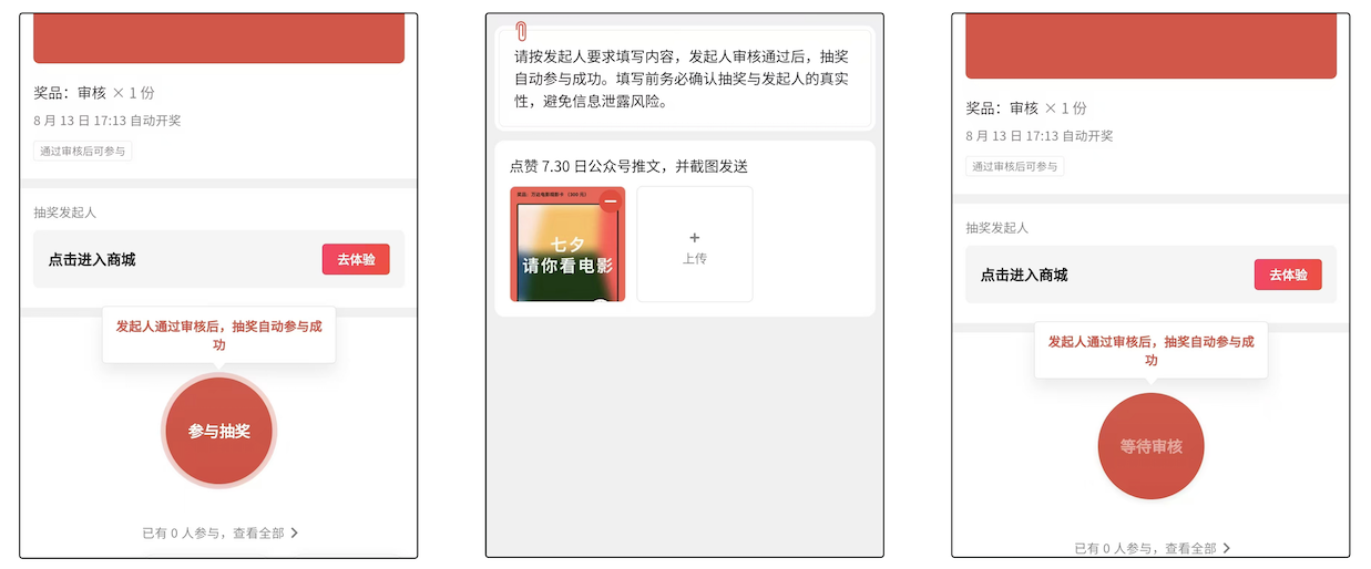 审核通过的用户,才算参与了抽奖。未通过,则参与失败,但可以重新提交资料。