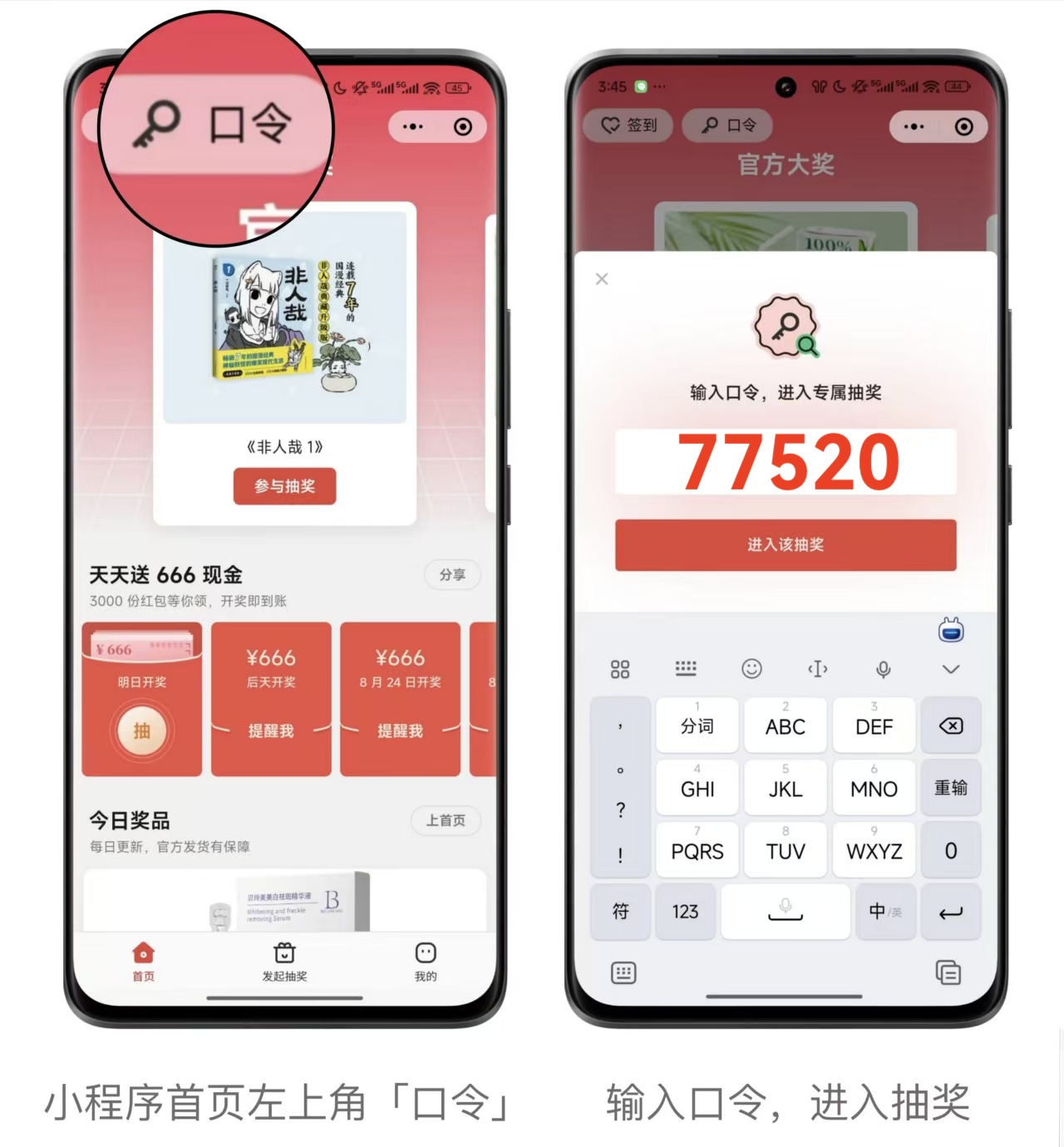 用户前往小程序,搜索口令,即可进入抽奖。