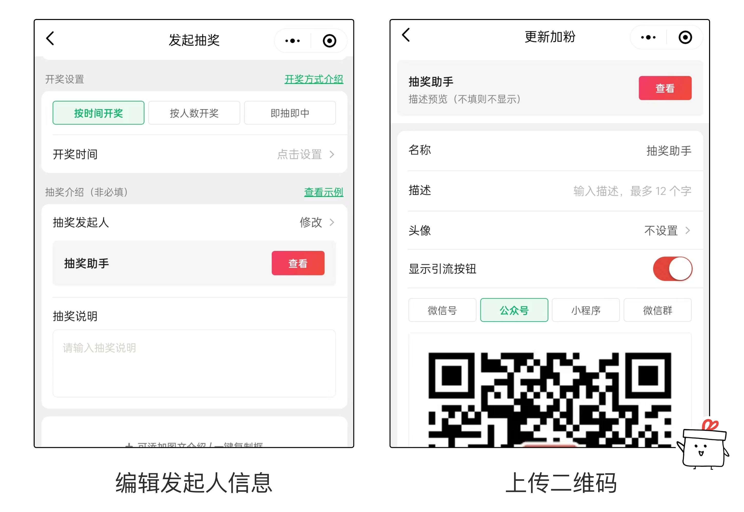 在发起人信息/图文详情中,插入二维码