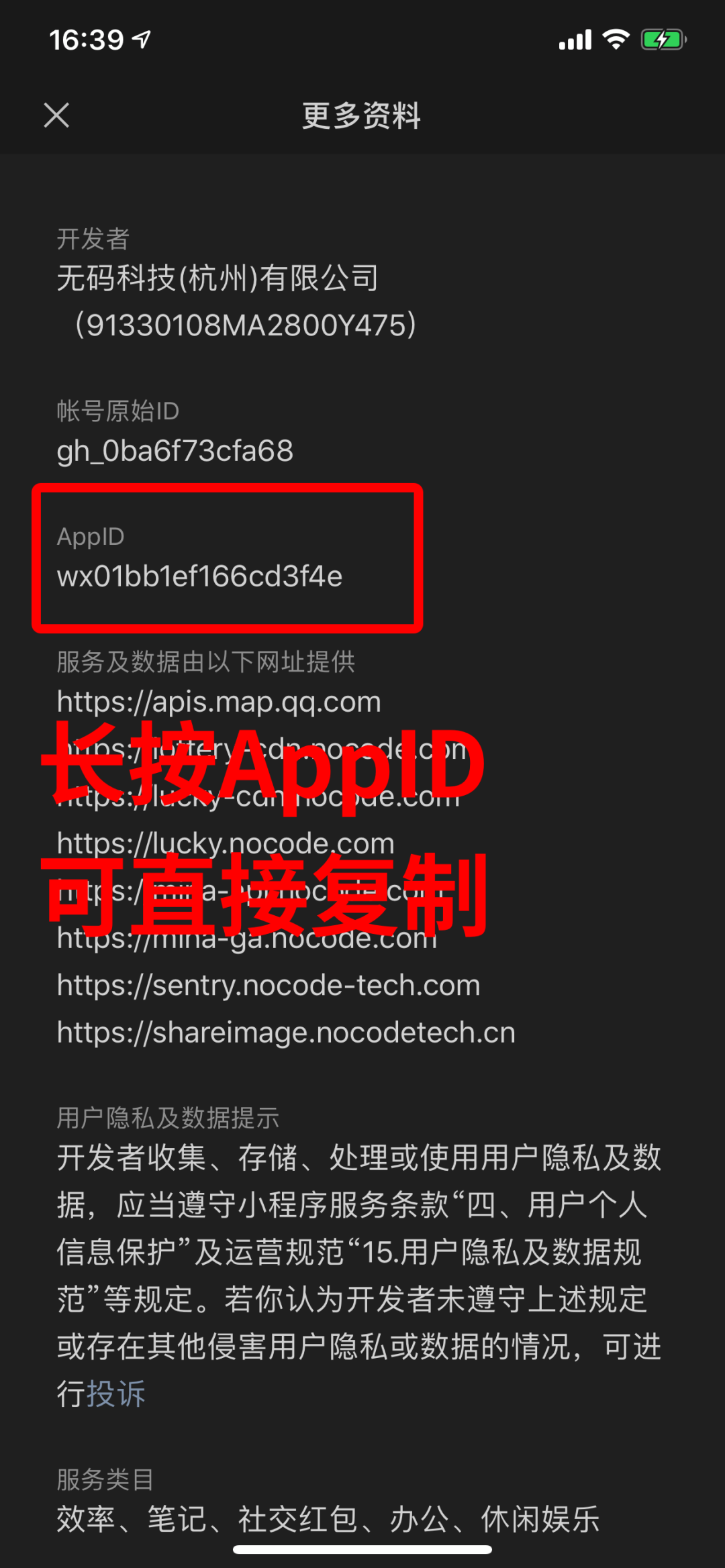 4. 长按 AppID 可直接复制