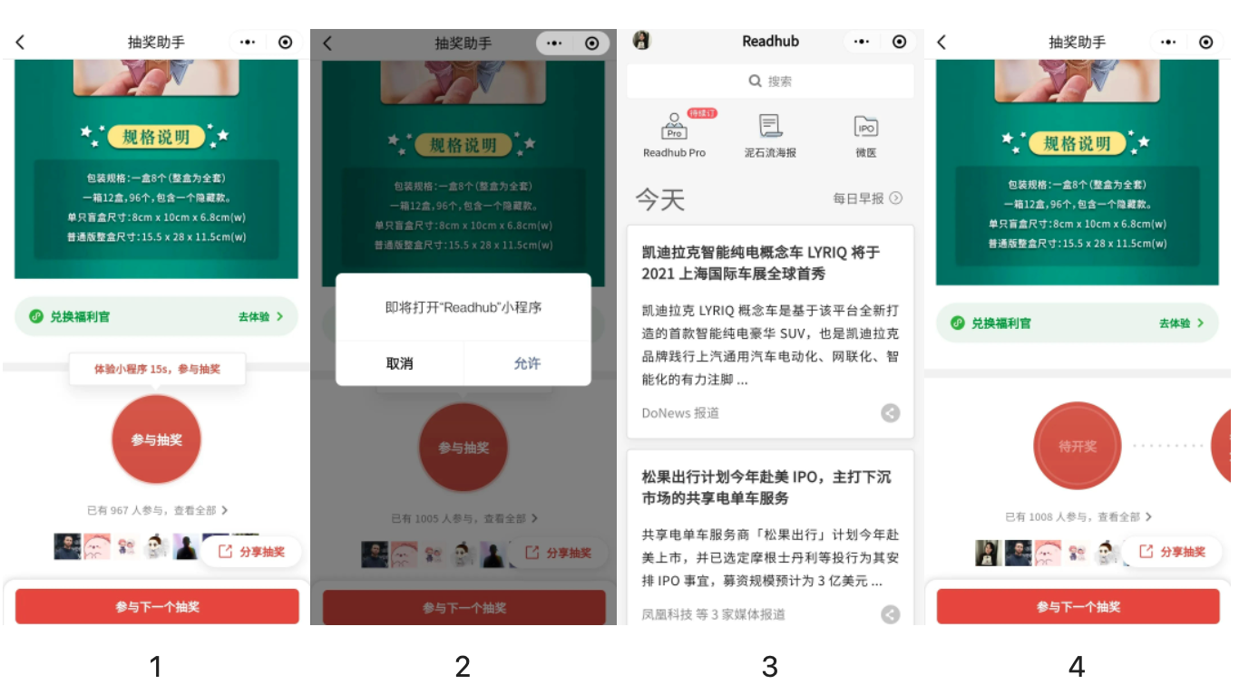 当你设置了体验小程序任务后,用户将按如下流程参与: