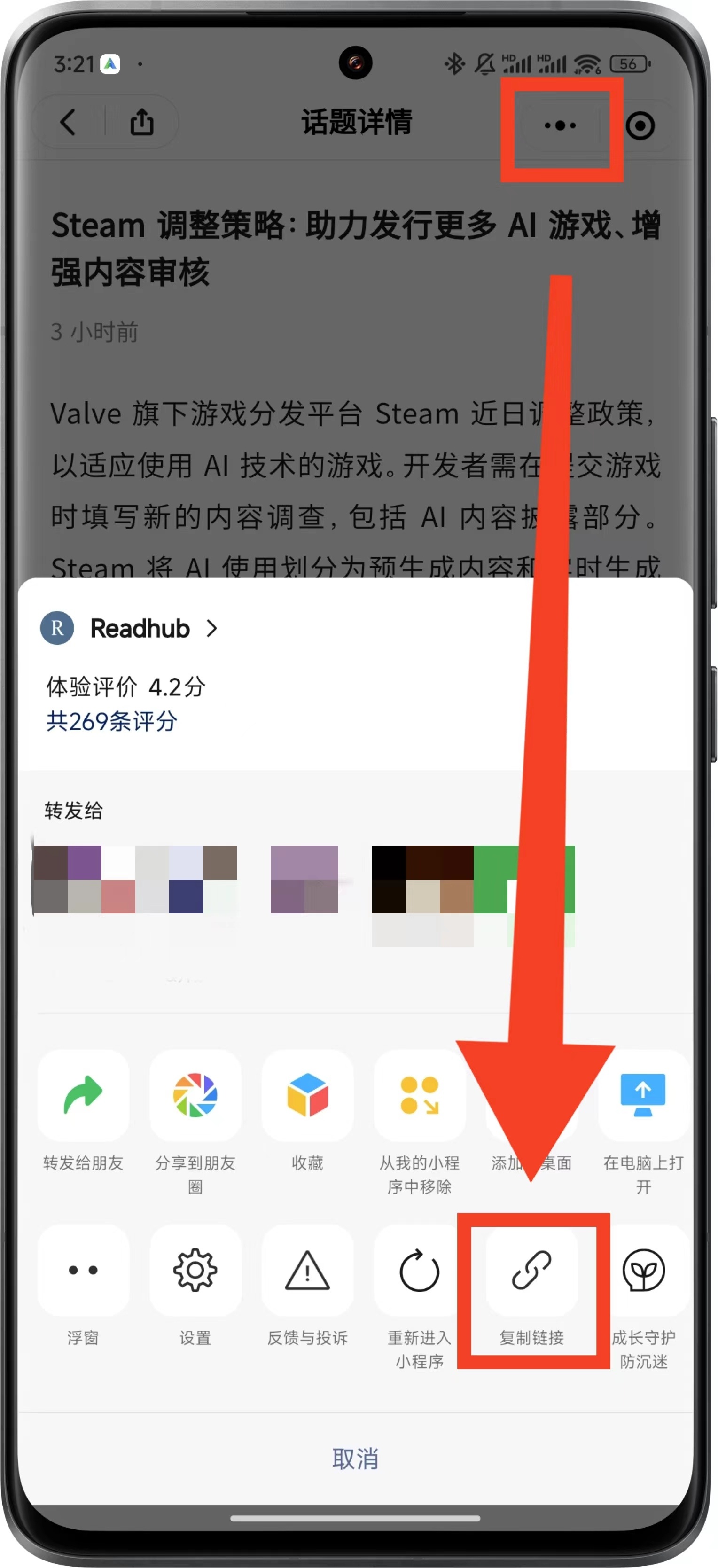 点击页面右上角 ... 选择「复制链接」,即可获取跳转信息