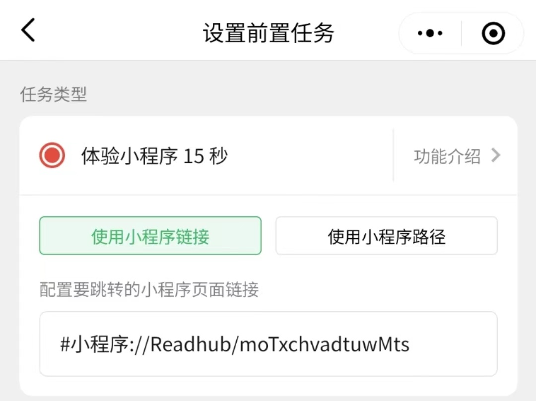 完成指定任务:体验小程序 15 秒