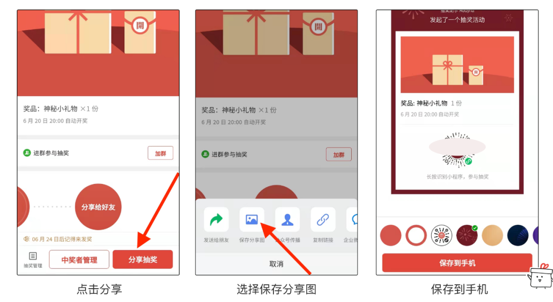 进入抽奖参与页,选择分享抽奖——保存分享图;