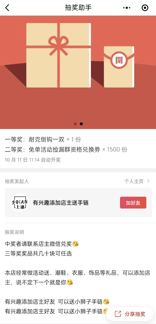 你需要通过奖品图片、奖品名称、抽奖说明、图文详情等板块,阐述自己的业务优势,吸引用户兴趣,并抛出「诱惑点」,促使用户将对奖品的兴趣转移到对你/公司的兴趣上,从而实现引流。