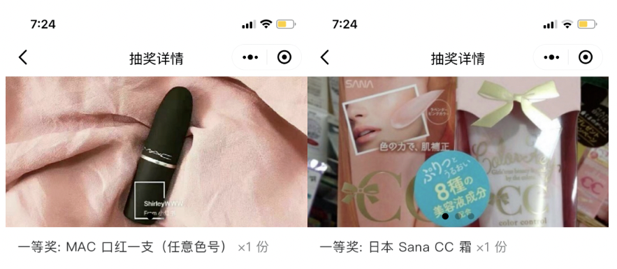 原本的奖品图片尺寸:900 * 450,在首页会显示为更小的方块,因此需要简洁、单一、清晰。以下述两款为例,哪个更容易吸引注意?