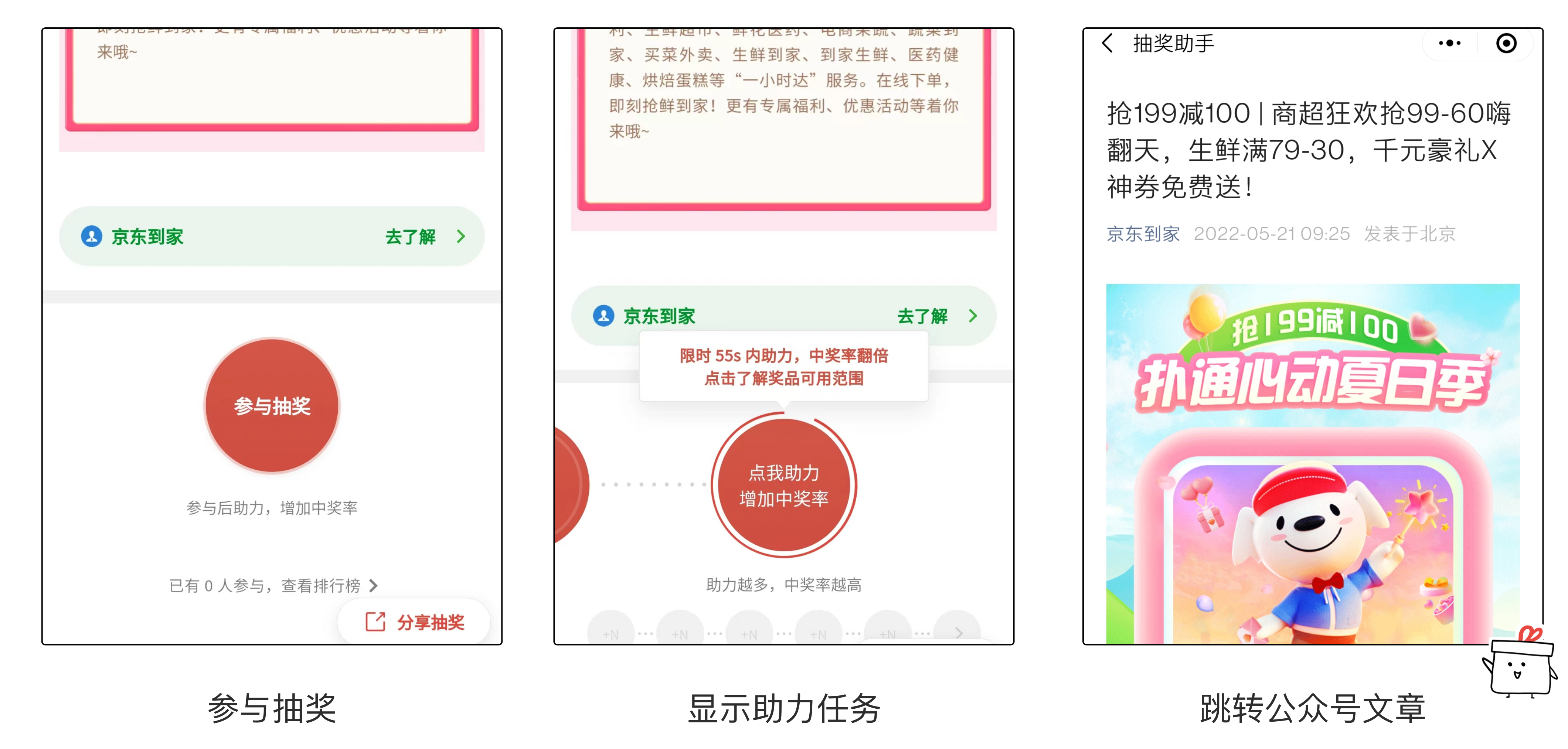 用户浏览公众号文章,且 15s 内没有返回抽奖页面(例如已离开小程序),任务完成,获得奖励;