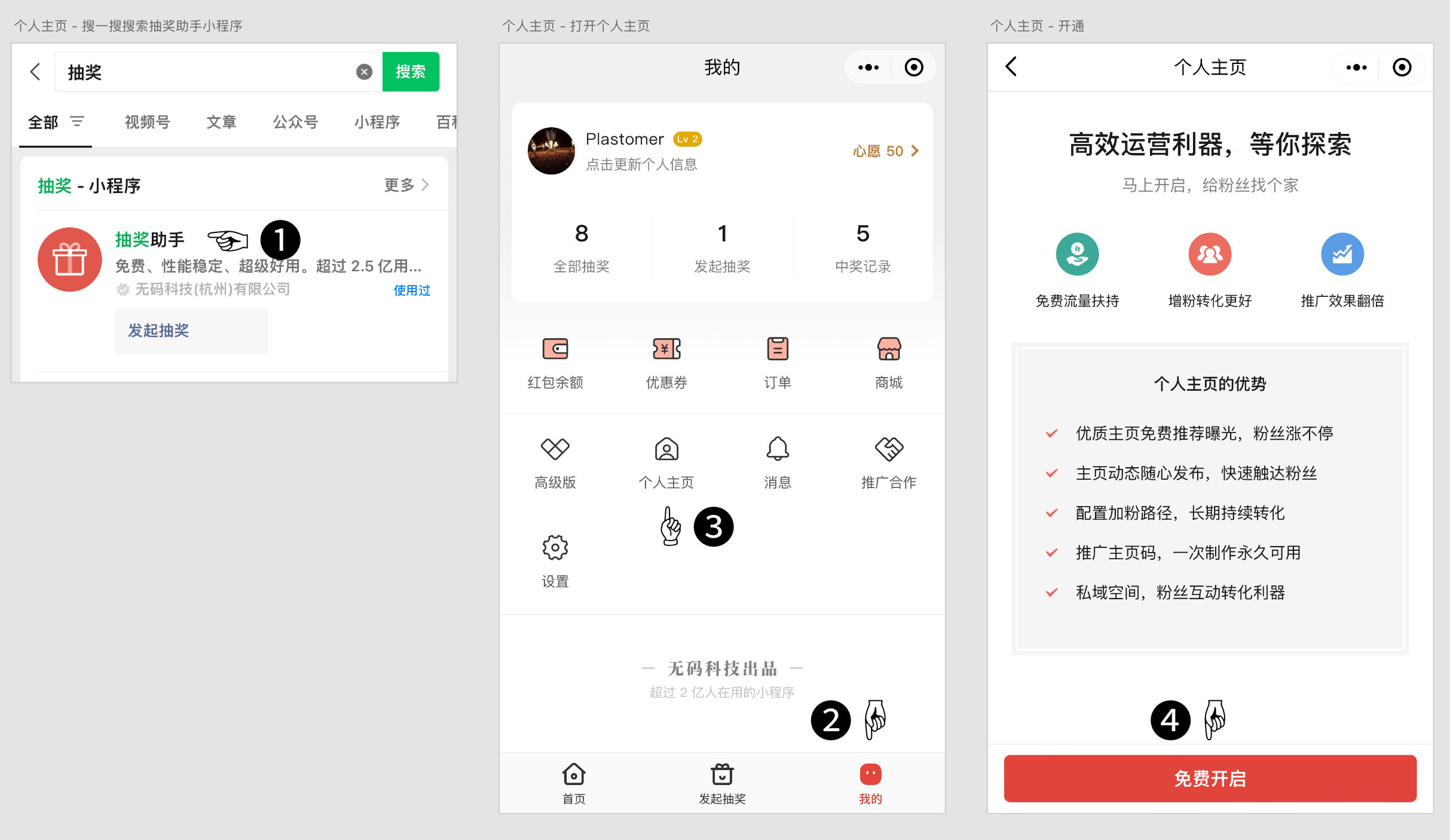 这些功能丰富了你与用户的互动方式,我们会在后面逐一介绍,接下来是如何开通主页。