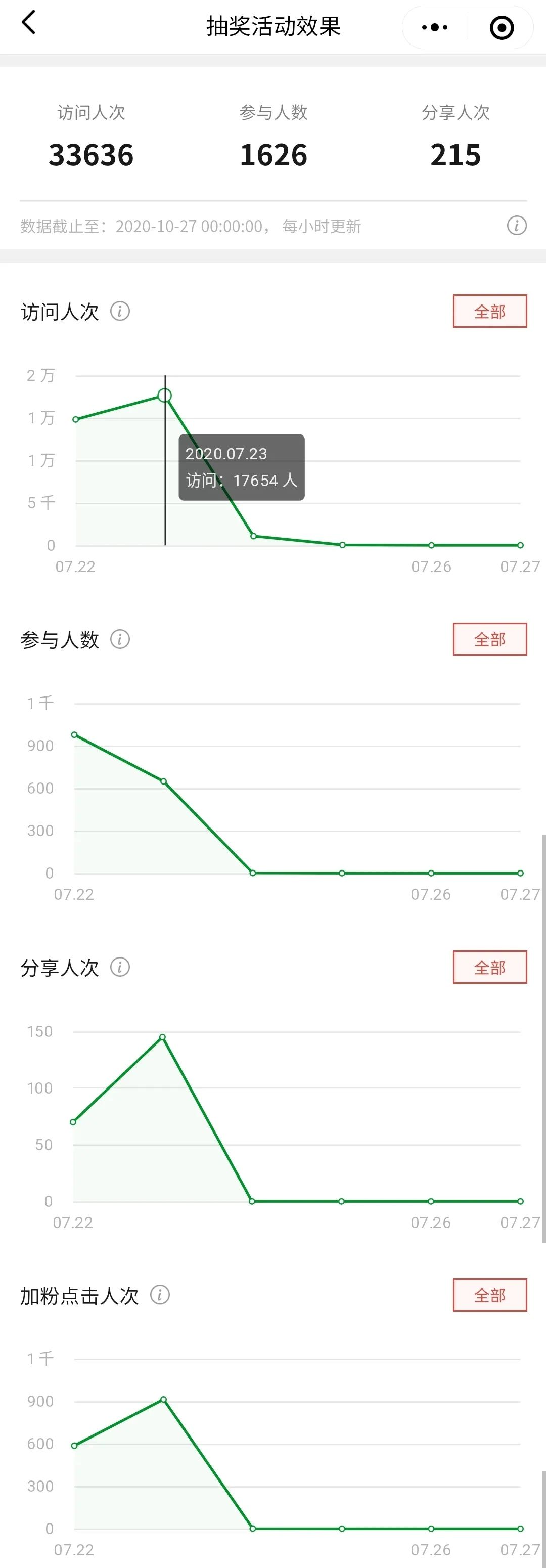 同一用户多次点击,不重复计费;通过其他方式(如发起者本身的分享、参与者组团分享等)进入活动,不计费。