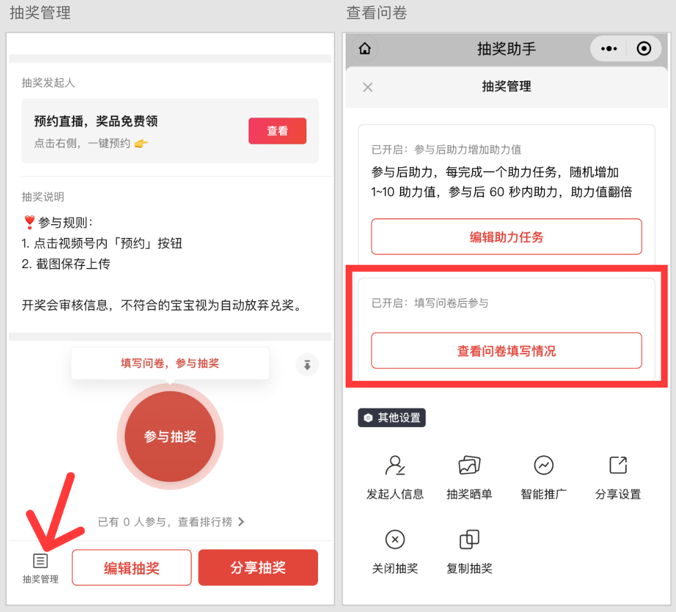 抽奖页面右下角,点击「我也发个抽奖」可复制新建。
