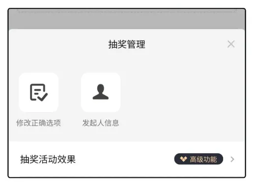 修改正确选项:在例如赛事竞猜等场景里,你可以在抽奖结束前,修改正确选项。入口在抽奖详情页面右下角 ^ 里,选择「修改正确选项」