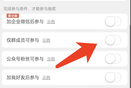 如果你希望给社群成员发福利,不希望被其他人参与的话,可以开启如下功能。