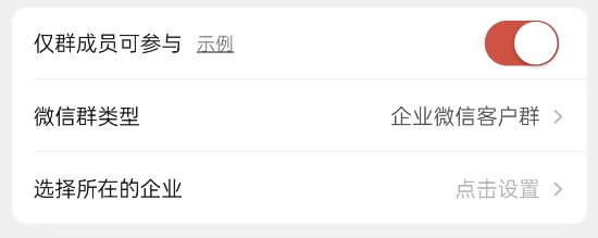 区别是在功能开启时,需要选择「仅企业微信群」