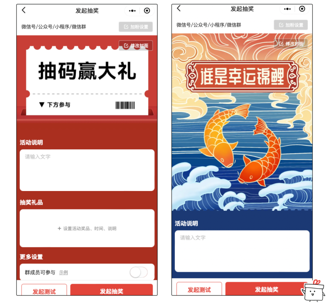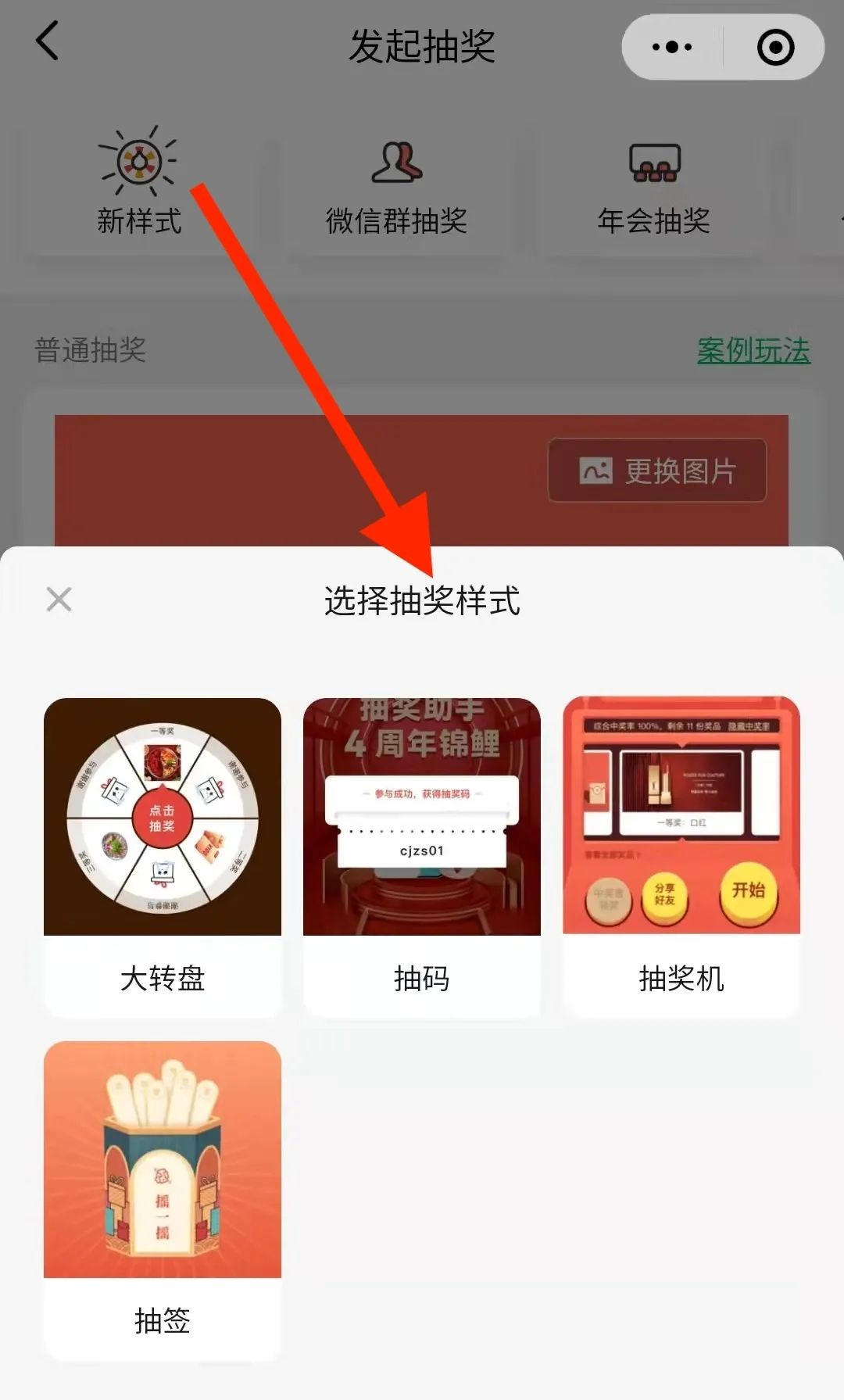 进入抽奖助手发起抽奖,选择「新样式」,即可看到所有营销模板。