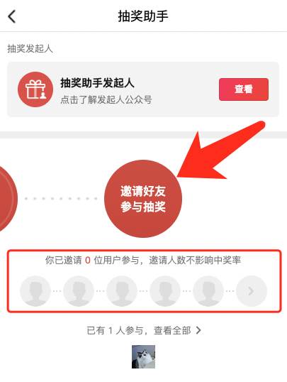 抽奖结束后,发起人可点击参与列表,查看符合条件的用户列表。