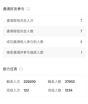 任务数据:指发起人开启了抽奖任务功能的情况下,任务从触发到完成的情况。可用于评估引导效果。