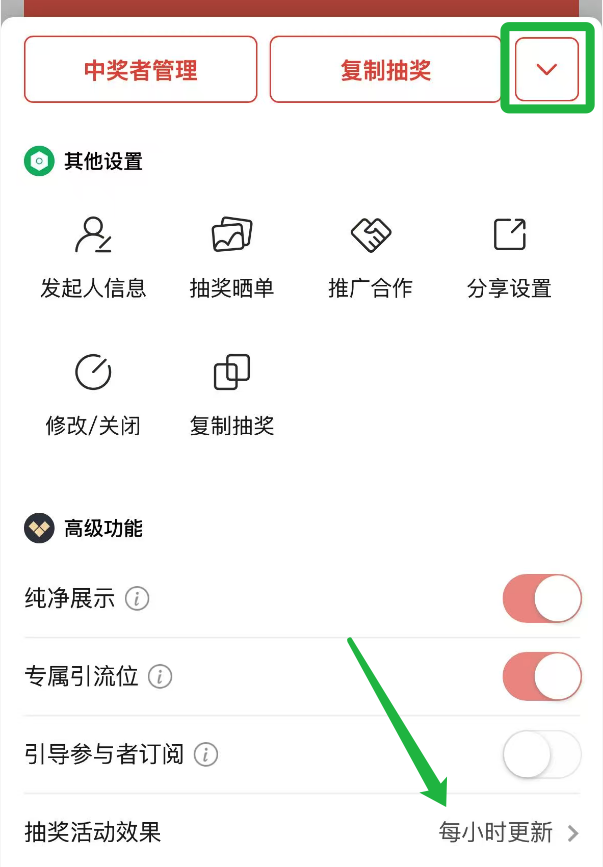 例如,你现在发起抽奖,开启此选项。