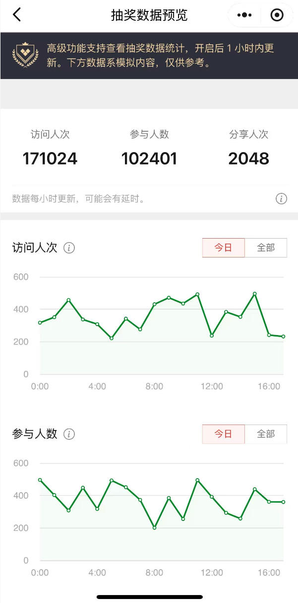 引流统计:指抽奖内跳转发起人信息的点击次数。